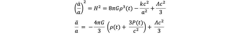 The scale factor a(t) is one of the most important quantities in the cosmology, as it describes the evolution and nature of the universe’s expansion. Its form is described by the Friedmann equations, which are derived from Einstein’s General Theory of Relativity. This theory conceptualizes gravity as the curvature of spacetime caused by mass and energy, formulated through the Einstein field equations: